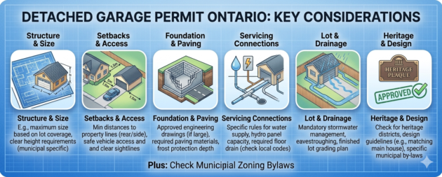 Keyword focus: detached garage permit Ontario — permit triggers, setbacks, size limits, slab versus footing questions, heated garages, inspections, and the small assumptions that turn a “simple garage” into a slower and more expensive project.